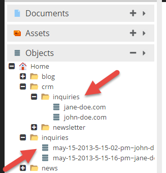 After submitting the form you'll find the data in "Objects" /crm and /inquiries.